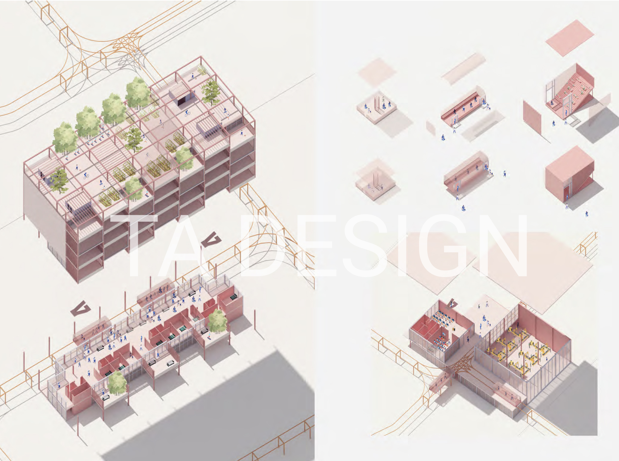 Selected previous student works. With the guidance and consultant by TA Design Studio, all students made a huge progress on their design skills, logically critique thinking, and final design presentations.