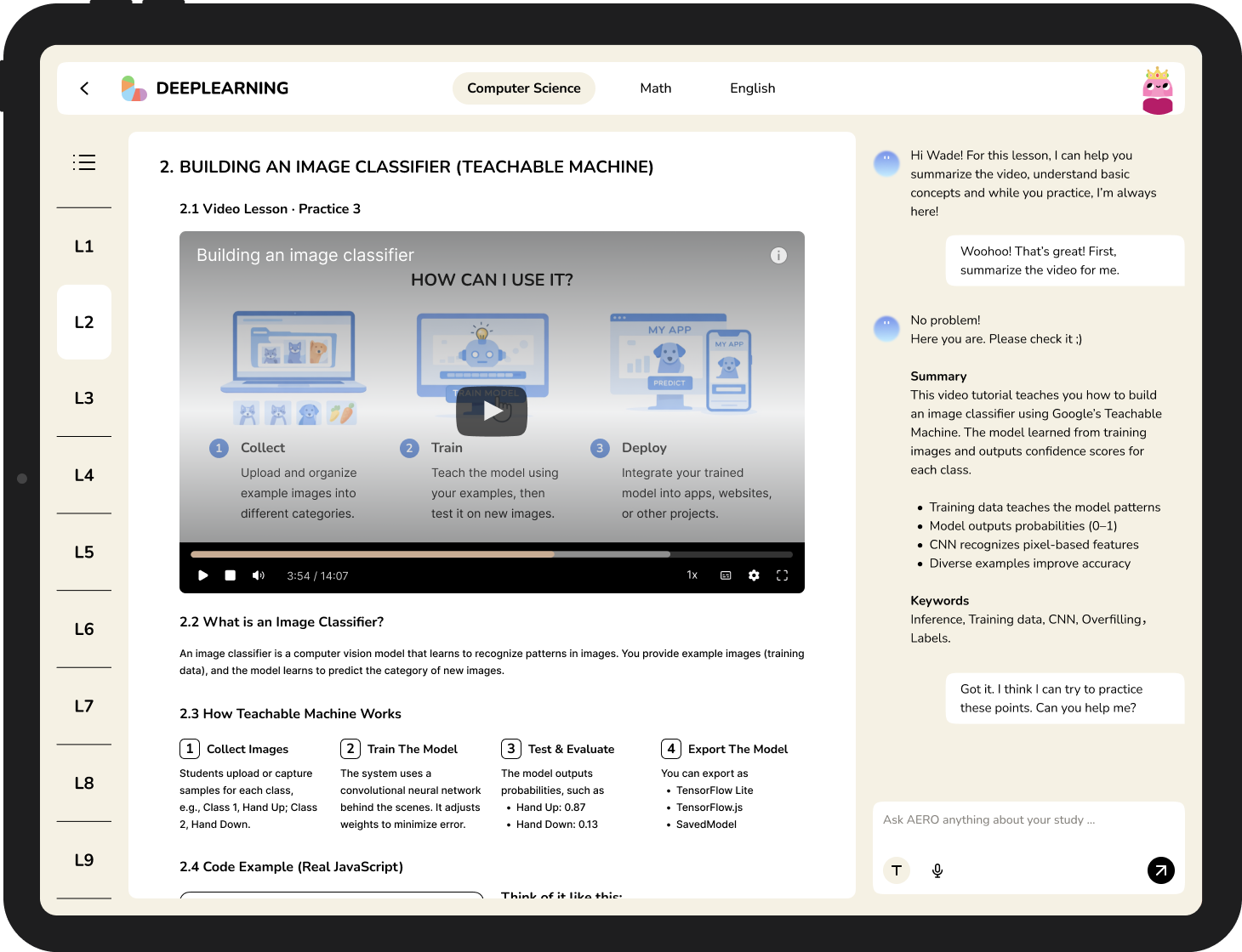 Learno combines AI-driven deep learning with contextual tutor support to guide learners through complex concepts. Real-time feedback and targeted explanations help reinforce understanding while encouraging independent problem-solving.